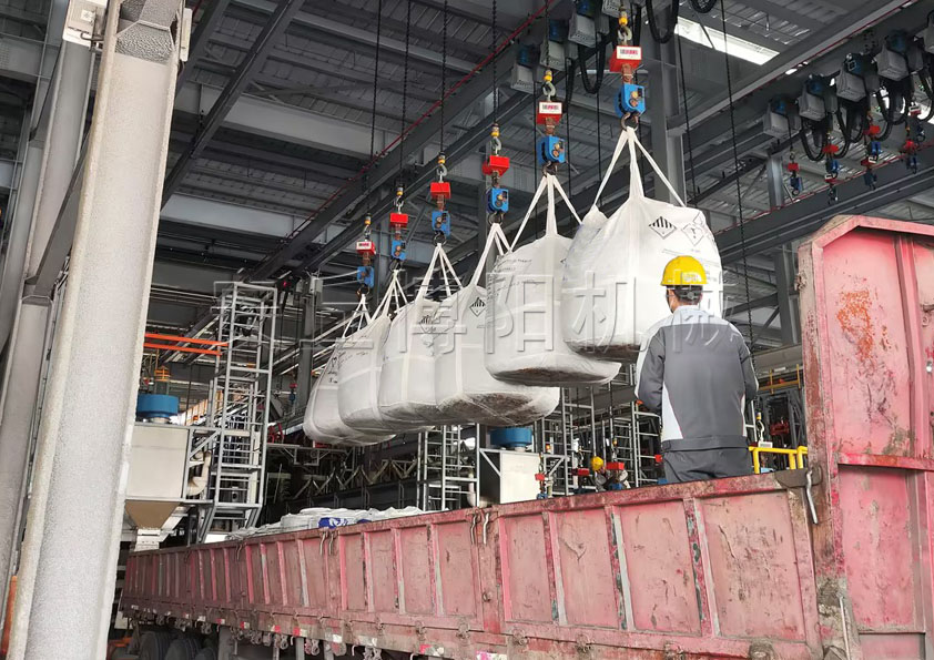 不落地噸袋全自動拆包機實現拆包輸送成套設備的吊裝、稱重、固定、整形、拆包、取樣、拍打、脫鉤、回程、輸送、收塵等整個流程的高度自動化、智能化穩定運行。