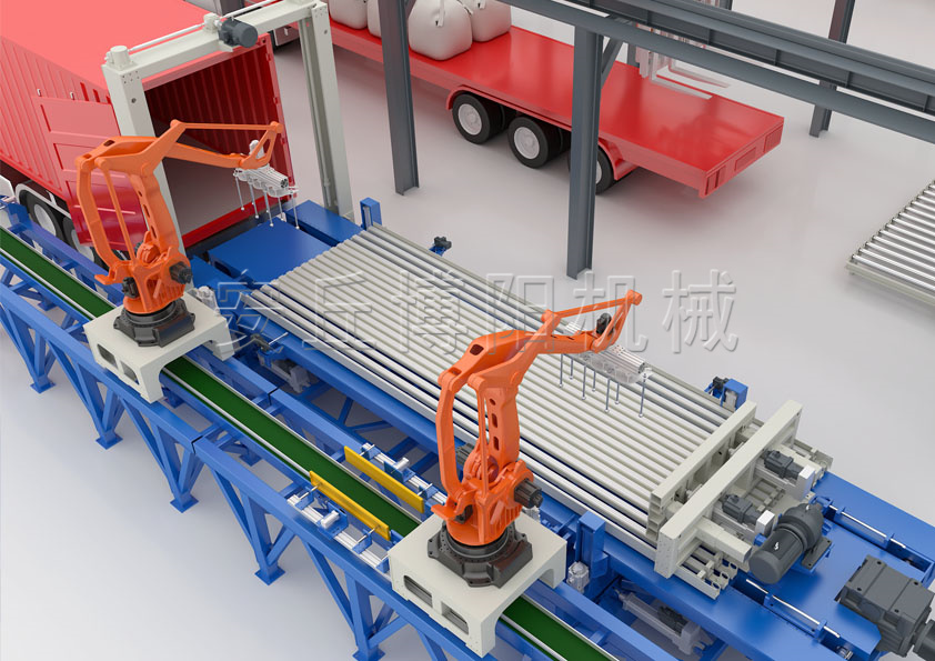 3、高適應性推進式結構:采用獨特的“推進”和“碼垛”分離設計,可在車外預先形成緊密的垛型,再整體推入車廂,比機械臂逐箱擺放的填充率更高,尤其適合集裝箱等空間受限的場景。