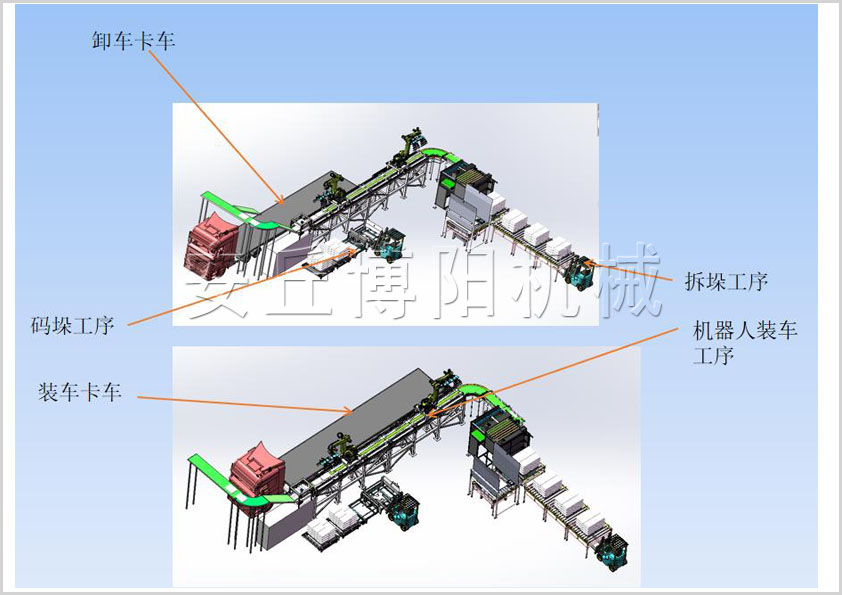 1真正的無人化操作:從車輛引導、貨箱接收、碼垛規劃到最終推進裝車,全過程無需人工干預,大幅降低人力成本和勞動強度。
